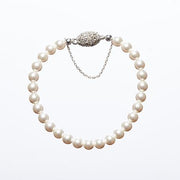 Beautifully stylish,the Pearl bracelet is perfect for any occasion consisting of 6mm white pearls with a 8mm magnetic crystal clasp and sterling silver security chain.