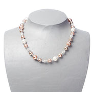 This bronze, Rose gold and ivory handmade necklace consists of 8mm & 10mm pearls, 6mm crystal disco balls and 4mm sterling silver beads. This necklace is simple with a contemporary twist. Always a hit with our customers this piece covers all occasions.