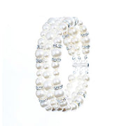 This elegant three strand magnificent bracelet consists of a variety of sized ivory pearls ranging from 4mm to 10mm with silver plated Rondelle's scattered throughout to give a touch of sparkle. Finished with a sterling silver tube clasp. This bracelet is timeless and suitable for all occasions.