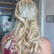 A beautiful comb with ivory pearls and crystal bow details. Available in a range of colours. All our hair pieces are custom made to your specifications. Contact us for alterations.