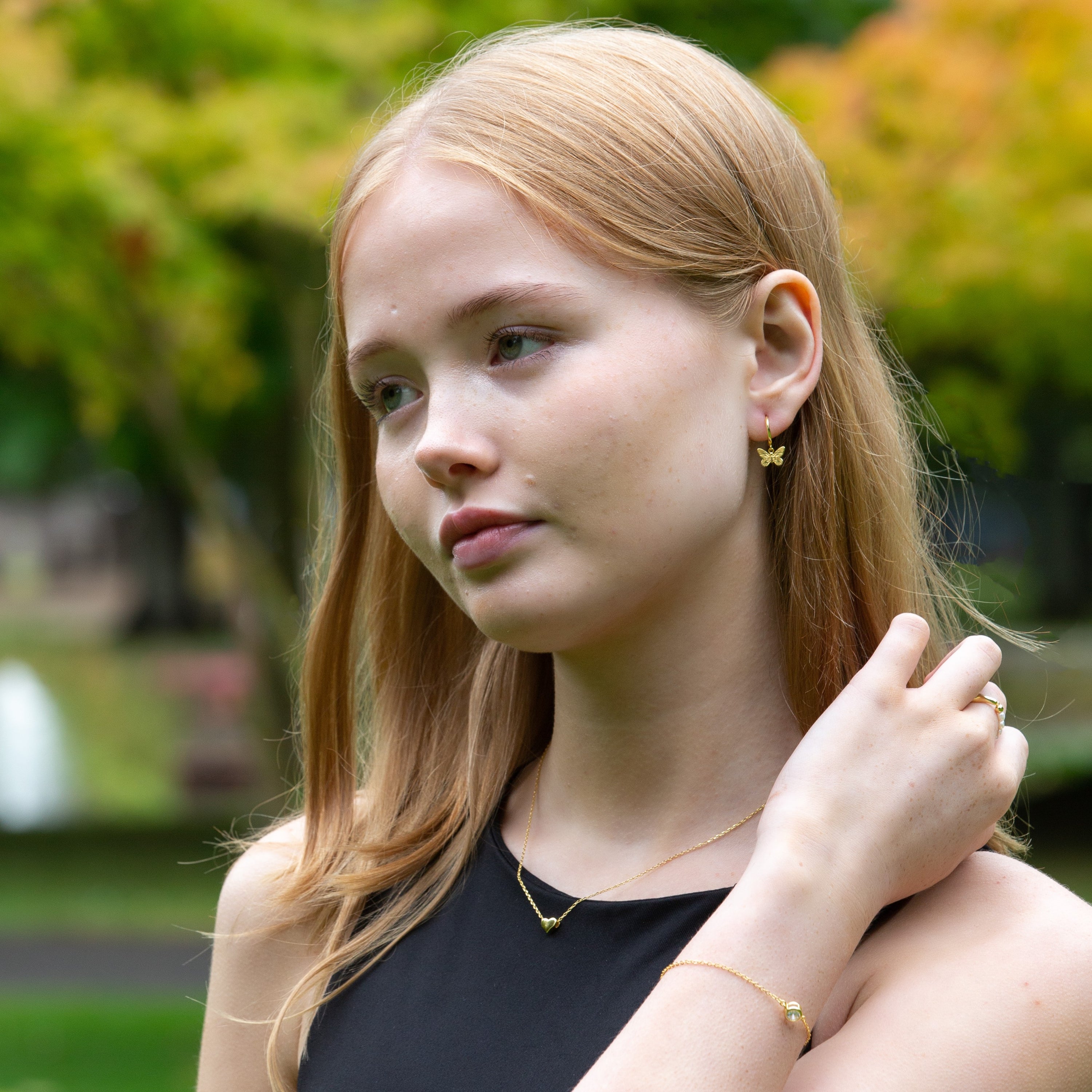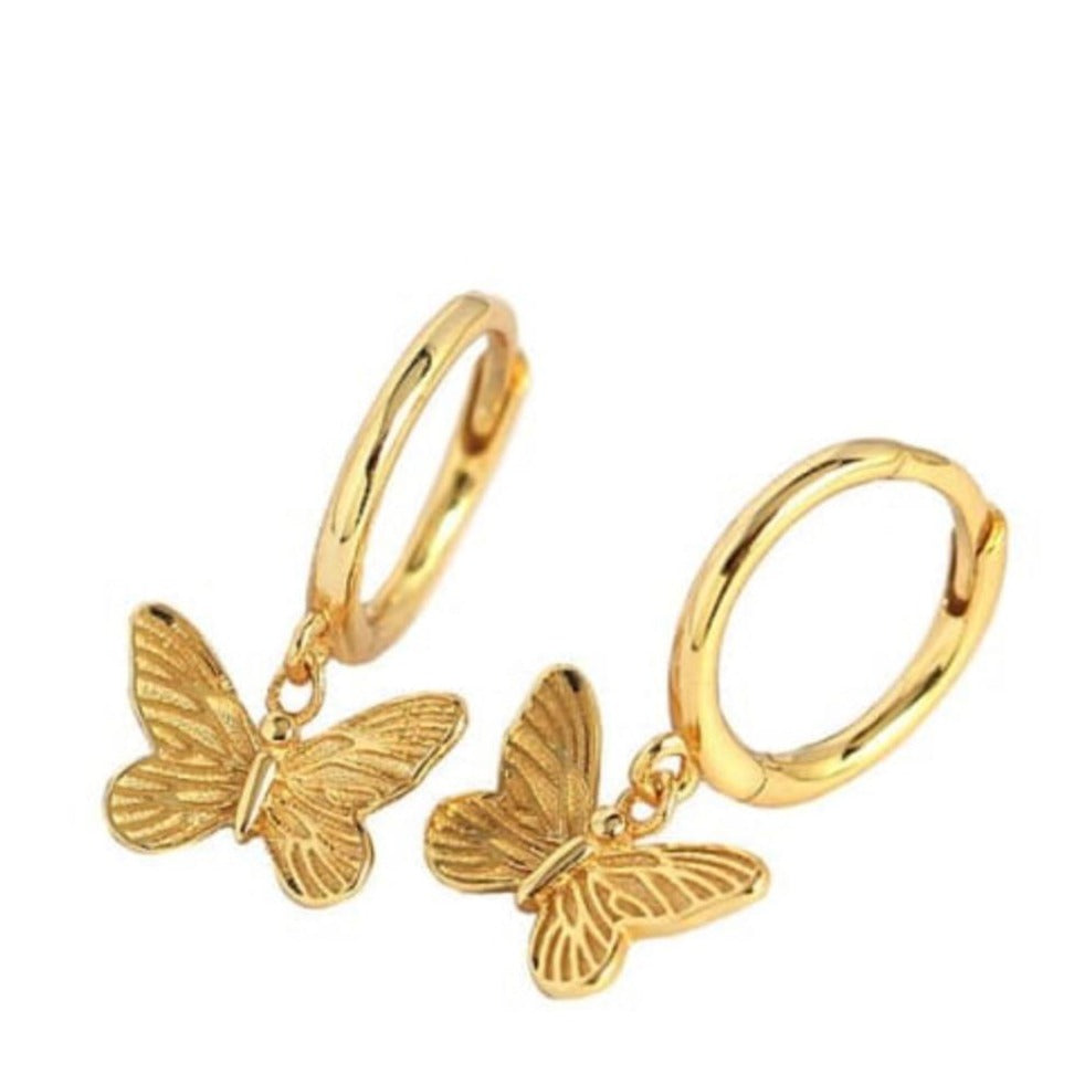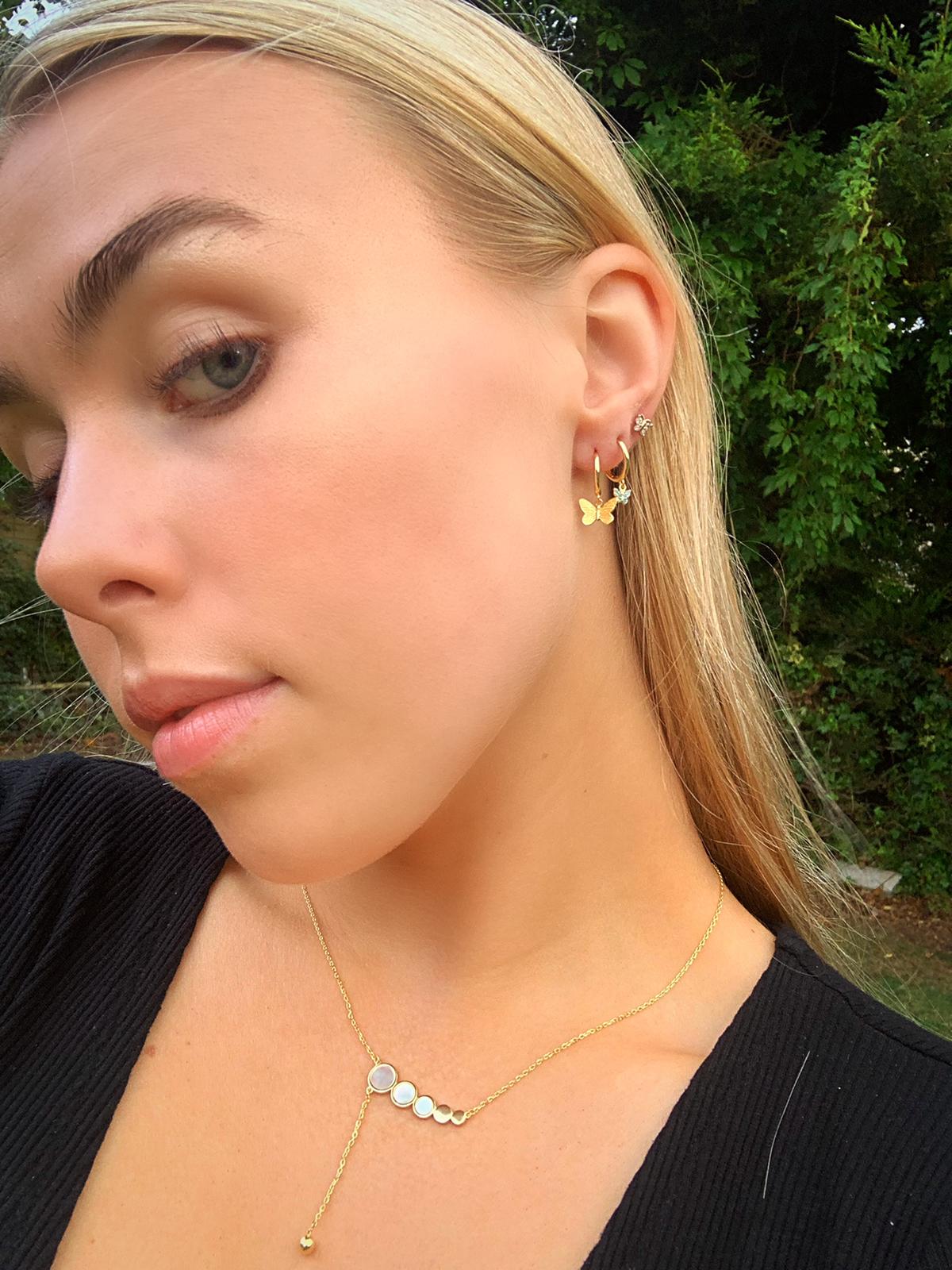 These gorgeous huggies with a butterfly drop are the perfect daytime look. It is a gorgeous standalone earring or can be mix and matched with other huggies or studs to dress your ear.