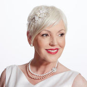 Comprising of beautiful pearls and crystals mounted on a bed of silver plated and encrusted leaves, this glistening flower is surrounded by delicate vines of tiny pearls and bi-cone crystals, making it a graceful and subtle statement. An ideal accompaniment to the dress that has floral detail, this piece carries that theme seamlessly into the hairstyle, unifying the look. Each vine is flexible and easy to manipulate, to create exactly the look you want.