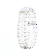 Three strand, classic style bridal bracelet comprising of 6mm and 4mm ivory pearls and 4mm crystals. Finished with a Sterling silver tube clasp. For other options not referred to below, please refer to our made to order section or contact us.