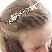 Each section is encrusted with beads and bicones. It intricately designed with a stunning display of craftsmanship with the wirework throughout. Perfect to match any communion dress.