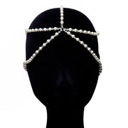 5 pearl strands draped across the hair, making for a beautiful bohemian bridal look and a veil alternative. This is the perfect piece if you are wearing your hair down. Each strand has been configured with 6mm pearl and 4m bicone.