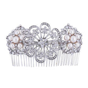This decadent comb is a beautiful mix of pearls and crystals. All elements are rhodium plated to give that vintage look mounted on a 11cm comb.