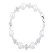 Delicate ivory pearl and crystal bracelet featuring 8mm pearls, 6mm silver plated crystal balls and a 4mm bicone. Matching earrings and necklaces make for a beautiful jewellery set. Other colours, clasps and sizes in this bracelet are also available, please refer to our bespoke service section.