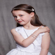 Simplistic 4mm pearl drape to add glamour yet a sense of innocence to your daughters Holy Communion look. These communion hair accessories can be worn to the front or back of hair and is suited to any hair style up or down. Hilary components on combs.
