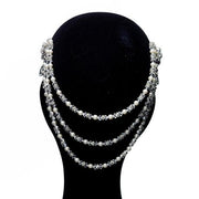 3 strand drape comprising of 6mm white pearls , 6mm Rondelles and 4mm bicones for the extravagant bride. This piece also can be worn a multitude of different ways .