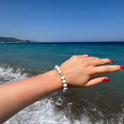 Our bespoke bead bracelet with 8mm beads is a standout piece, offering timeless elegance and style. Other sizes of this handmade bracelet are available. The simplicity of this design makes this bracelet timeless allowing countless wears. It is also the perfect piece for layering with other bracelets to achieve a more contemporary look.