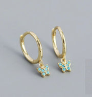 These gorgeous 8mm hoop with 4mm sterling silver gold plated butterfly are the perfect gift. Allergy free and lightweight and finished with a gorgeous tourquoise crystal.