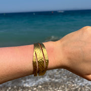 Our chunky trendy cuff bangle, the perfect accessory for any occasion! Whether you're dressing up for a special night out or adding a stylish touch to your everyday look. Its bold design makes a statement while still being comfortable enough for all-day wear. Elevate your style with this eye-catching piece that complements any outfit effortlessly!