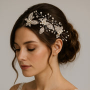 Triple Starflower Hairband made with crystal leaves and pearl and crystal vines. Gorgeous delicate crystal hairpiece.