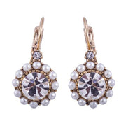 Sleek gold toned drop earrings with a crystal centre that is embellished with a pearl surround. These dainty earrings paired with a stylish updo are the perfect accessory for any formal event but are extremely versatile and can very easily be worn everyday.