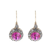 Vintage Lou Lou Fushia are a Sleek gold toned drop earrings with a fuchsia pink centre that is embellished with a crystal surround. These dainty earrings paired with a stylish updo are the perfect accessory for any formal event but are extremely versatile and can very easily be worn everyday.