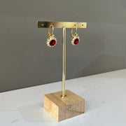 Vintage Lou Lou Ruby Red are a Sleek gold toned drop earrings with a fuchsia pink centre that is embellished with a crystal surround. These dainty earrings paired with a stylish updo are the perfect accessory for any formal event but are extremely versatile and can very easily be worn everyday.