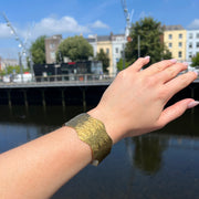 Our chunky trendy cuff bangle, the perfect accessory for any occasion! Whether you're dressing up for a special night out or adding a stylish touch to your everyday look. Its bold design makes a statement while still being comfortable enough for all-day wear. Elevate your style with this eye-catching piece that complements any outfit effortlessly!