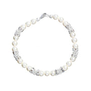 Simple ivory pearl and crystal bracelet. Comprising of 6mm pearls encased with a silver plated rondelle and crystal ball. Creating a modern contemporary feel. Subtle and suitable for any dress.