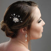 This pearl cluster consists of white freshwater pearls mounted on a crystal rhodium plated plate with blush pearl speckled thoughout.