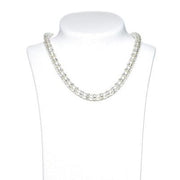 A solid yet elegant ivory 8mm pearl necklace with crystal rondelle in between each pearl with a sterling silver lobster clasp.