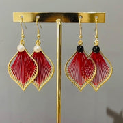 Gold /Red Fan Earring with Freshwater Pearl