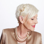 Beautifully elegant, the Ariette Hairband is a piece that is exquisite with any hairstyle. The gold vines are embedded with 4mm crystals and pearls and each vine is flexible and easy to manipulate creating the perfect look. Comprising of gold plated leaves with crystals and pearls intricately mounted on top. This headpiece will go with a variety of outfits and is definitely a great piece to have!