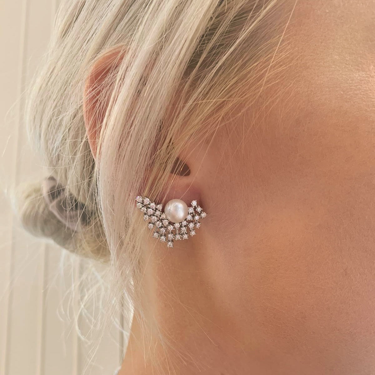 A unique twist on a classic pair of pearl studs.