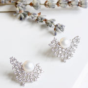 Sterling Silver Pearl Crystal Fan Earrings