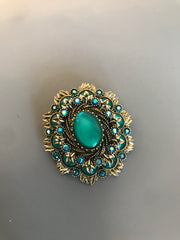 This stunning oval, turquoise brooch with gold accents is perfect for accessorising any outfit.